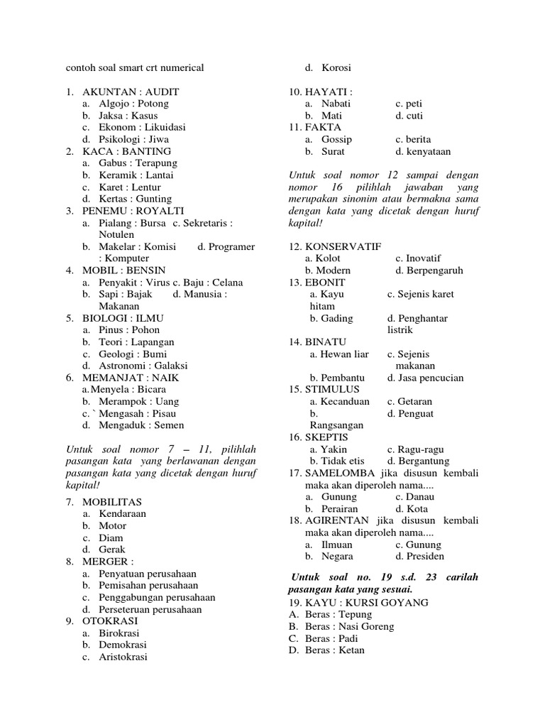 Soal Soal Psikotes Kemampuan Verbal Sinonim Antonim