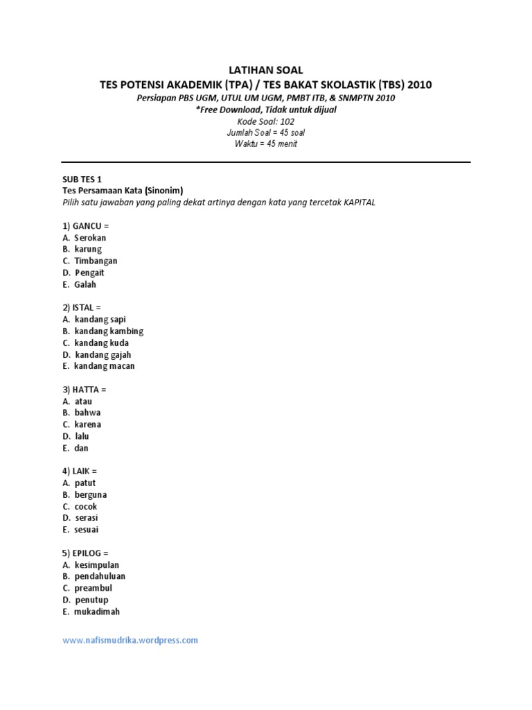 135417229 Soal Tpa Ok Pdf Soal Tes Potensi Akademik Tpa