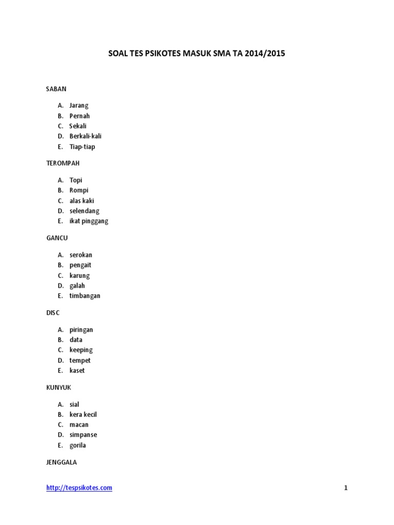 Soal Tes Psikotes Masuk Sma Ta 2014 2015