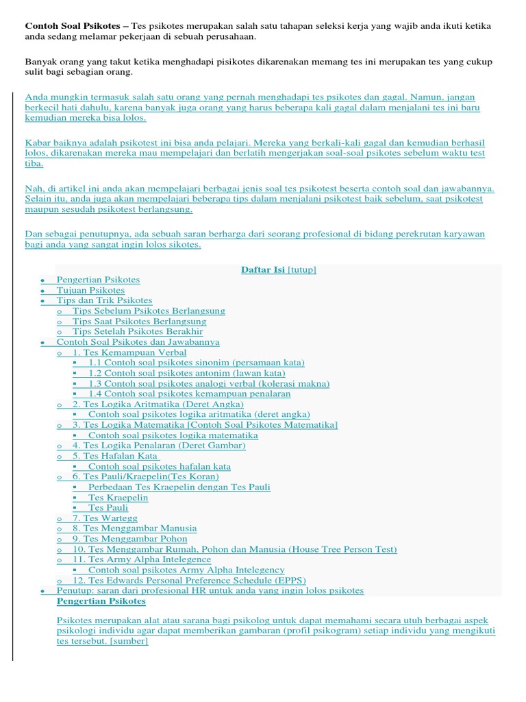 Pdf Contoh Soal Psikotes Kerja Dan Jawaban Havid Aji