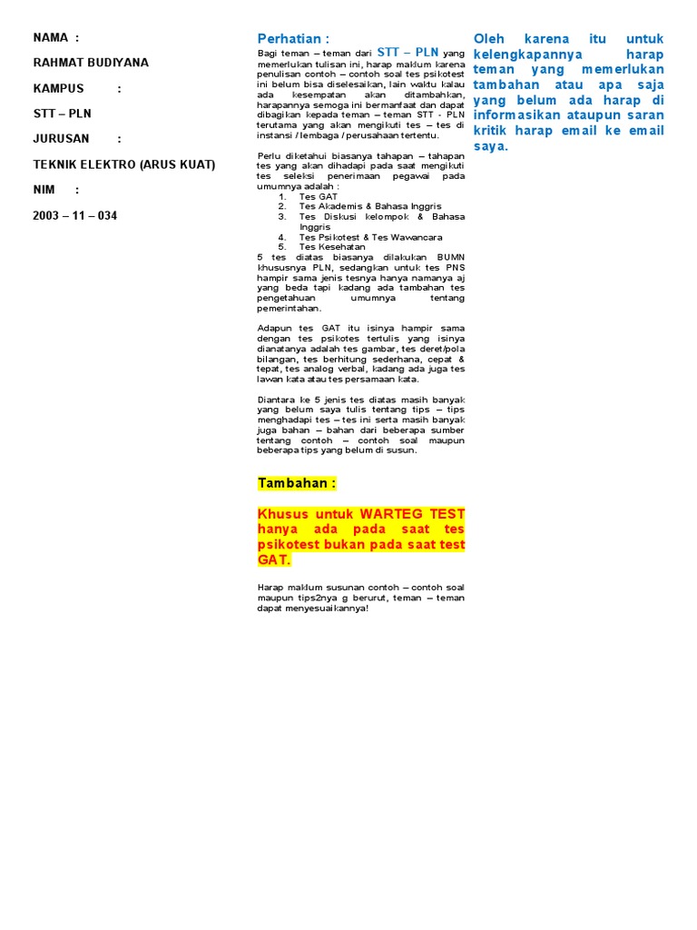 Pdf Contoh Contoh Soal Psikotes Ui Tni Dan Polri Tipskarir