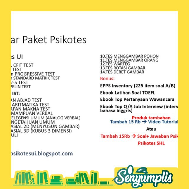 Jual Soal Psikotes Blit Kunci Jawaban Bonus Psikotes Shl