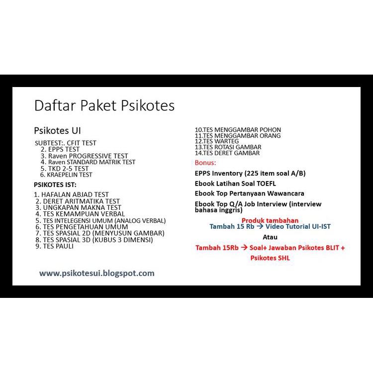 Jual Soal Psikotes Ui Ist Terbaru 2019 Toefl Harga